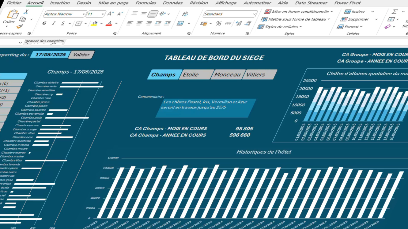 - XEQUIV.MATCH pour intégrer dynamiquement les données par site et par phase de reporting,